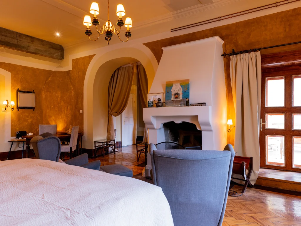 Practic, te cazezi intr-un conac sau in cladiri vechi restaurate, cu camere spatioasa, multe dintre ele potrivite pentru familii. Nu e genul de loc in care ai animatie pentru copii sau loc de joaca clasic, dar compenseaza prin ceva mult mai valoros: spatiu si libertate.
